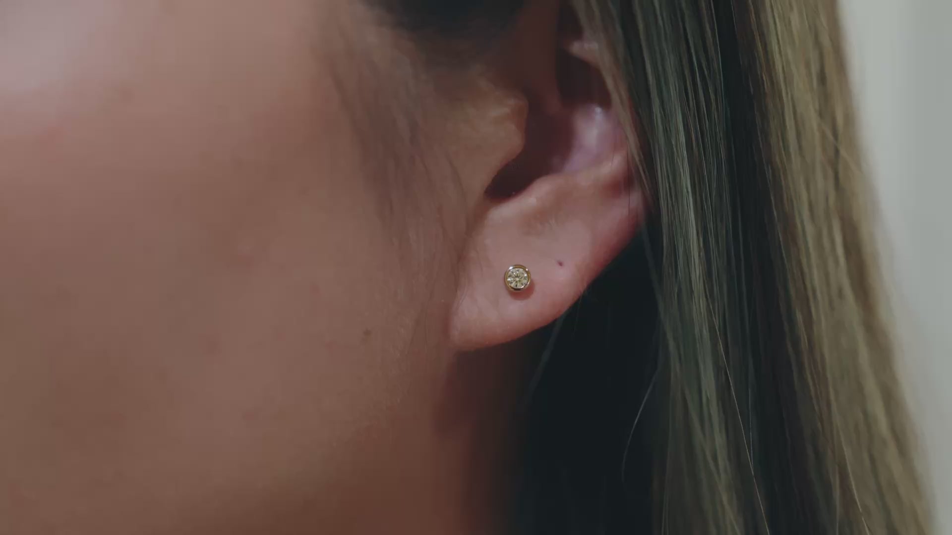 モアサナイトの周りを金属で囲うベゼルタイプのピアス。ベゼルタイプは輝きが少し控えめに見えるので、カジュアルな服装にも合わせやすいアイテム。ピアスホールが複数ある方には二連付けとしてもおすすめ。