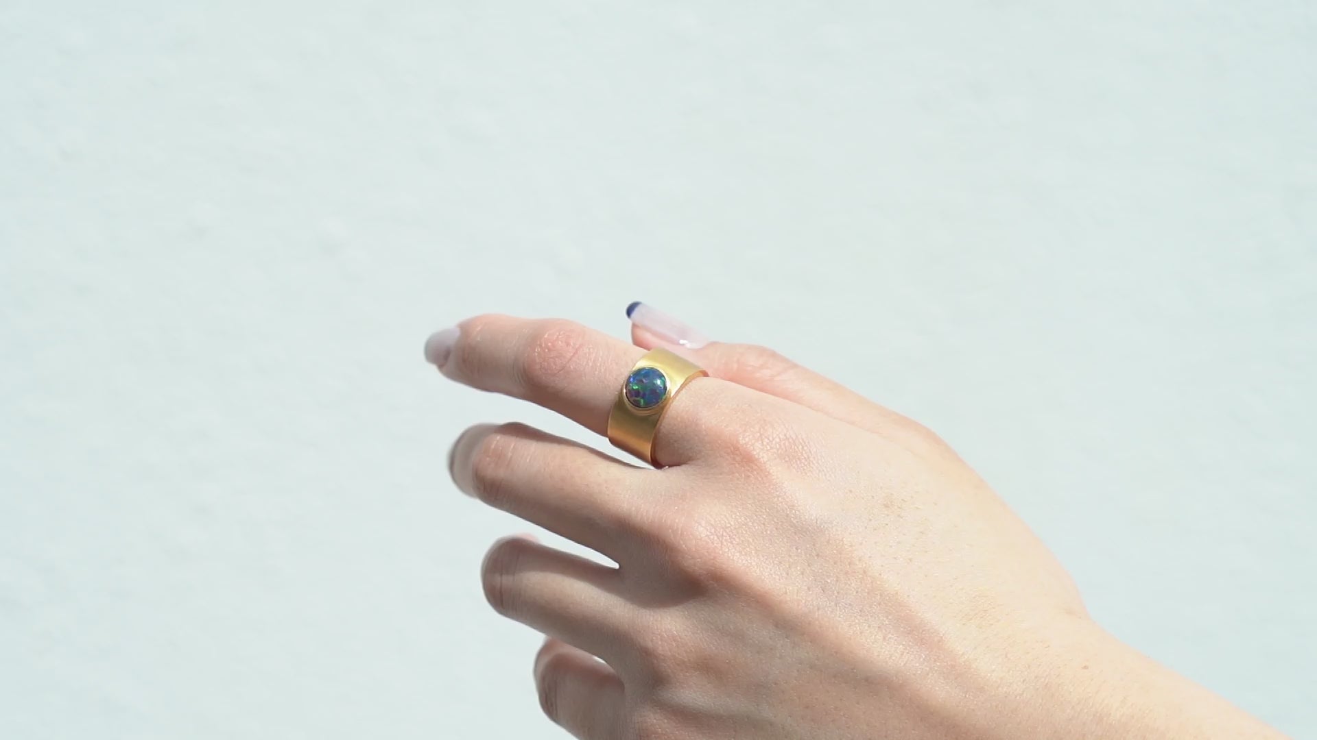 The opal used is a synthetic black opal with a beautiful shine of green and blue. Opal, whose color changes greatly depending on the light and location, is a luxurious ring that you will want to look at while wearing it.