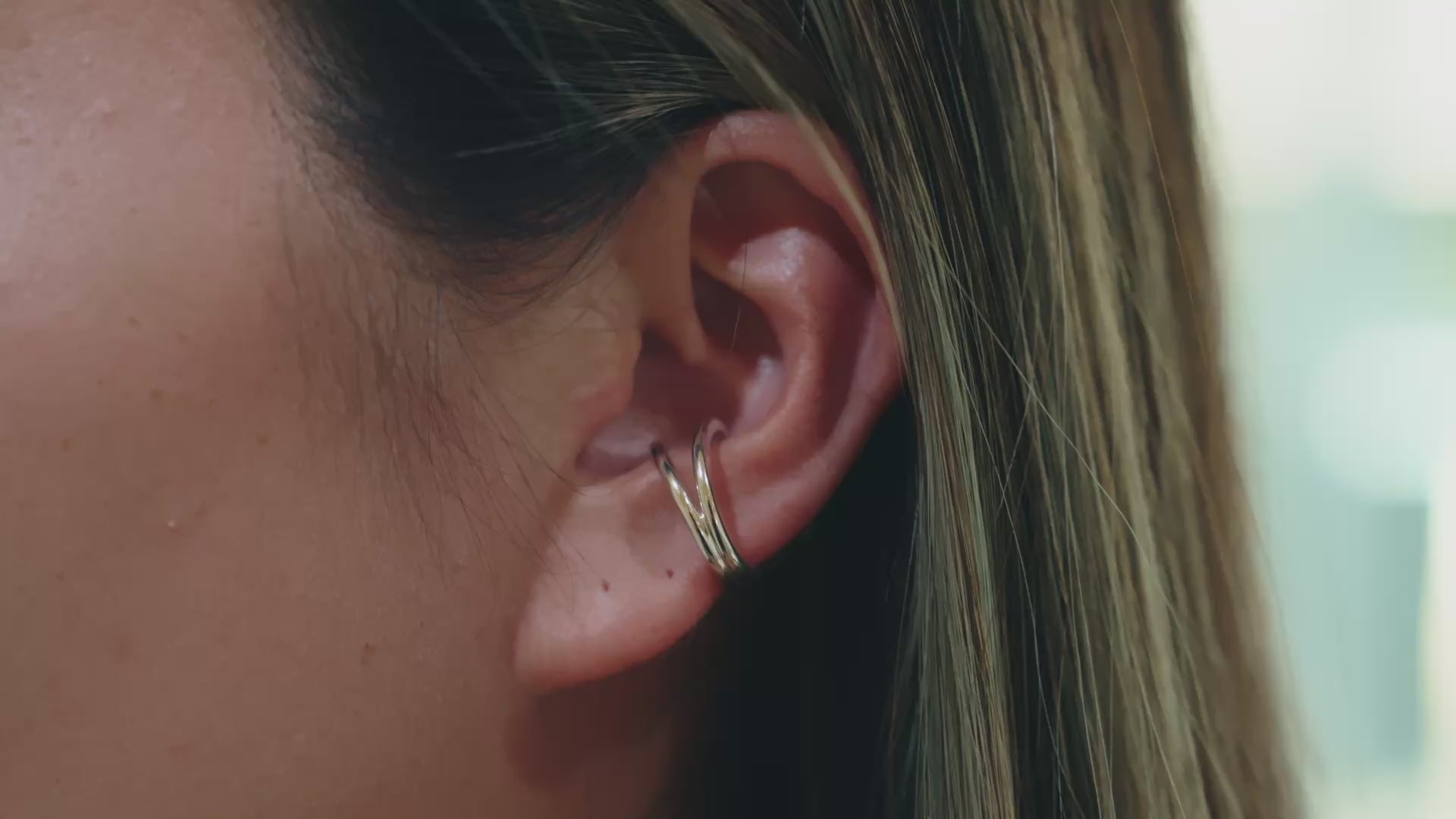 A design inspired by the arched architecture often seen in ancient times. An ear cuff with two overlapping straight lines that is simple yet has just the right amount of presence. It is also an item that can be used as a size 5 pinky ring.
