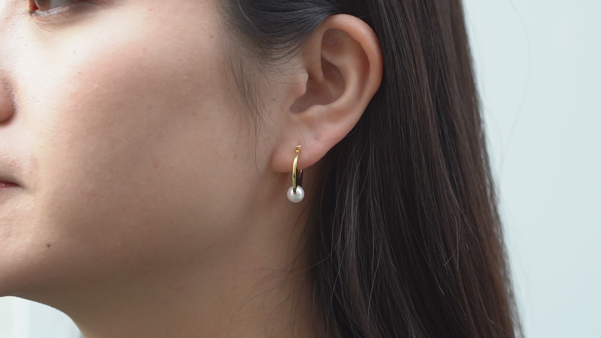 A fusion of sharp circular and Akoya pearl earrings. The moderate volume of the base metal part suppresses the gorgeous feel of the pearl, making it a design that is easier to use on a daily basis.
