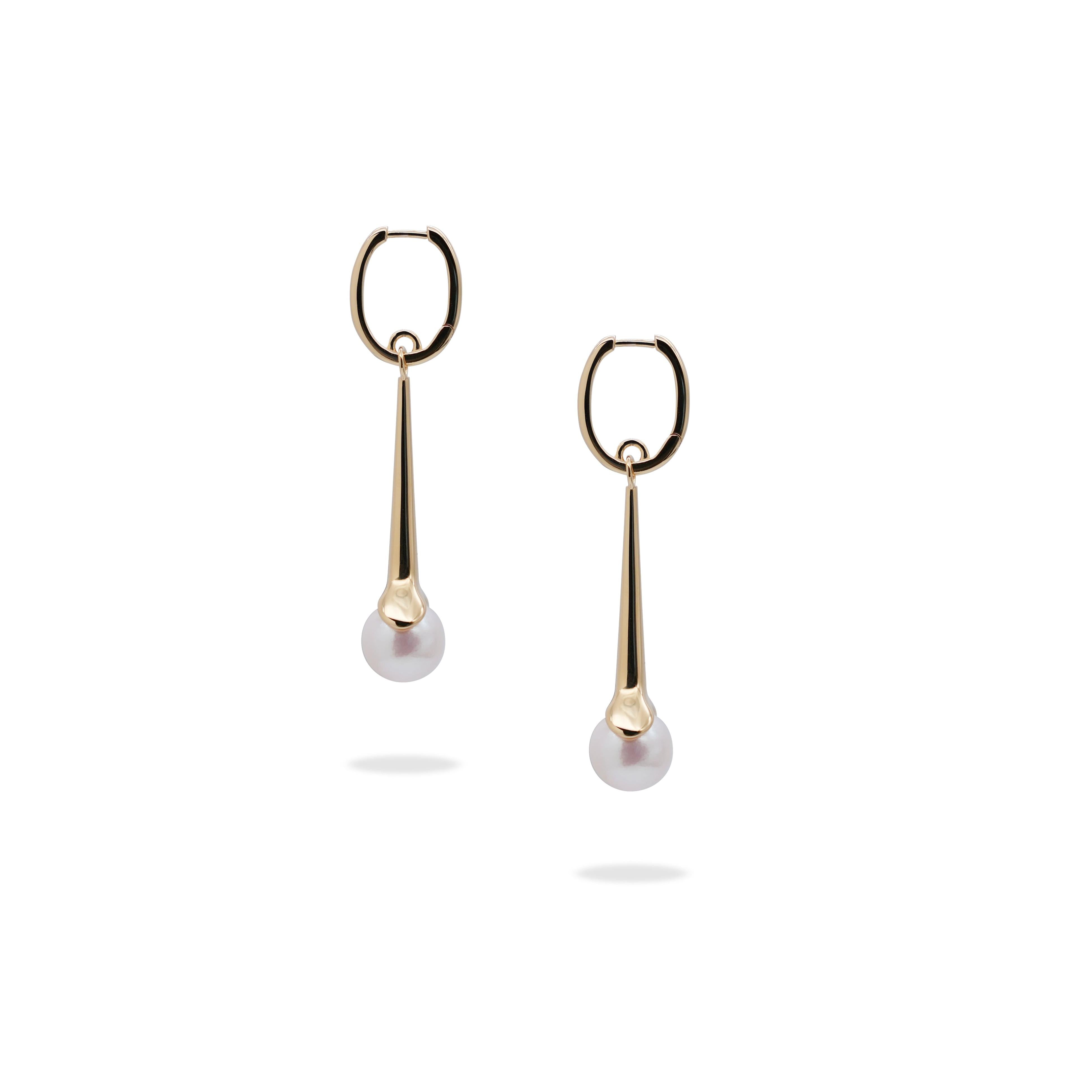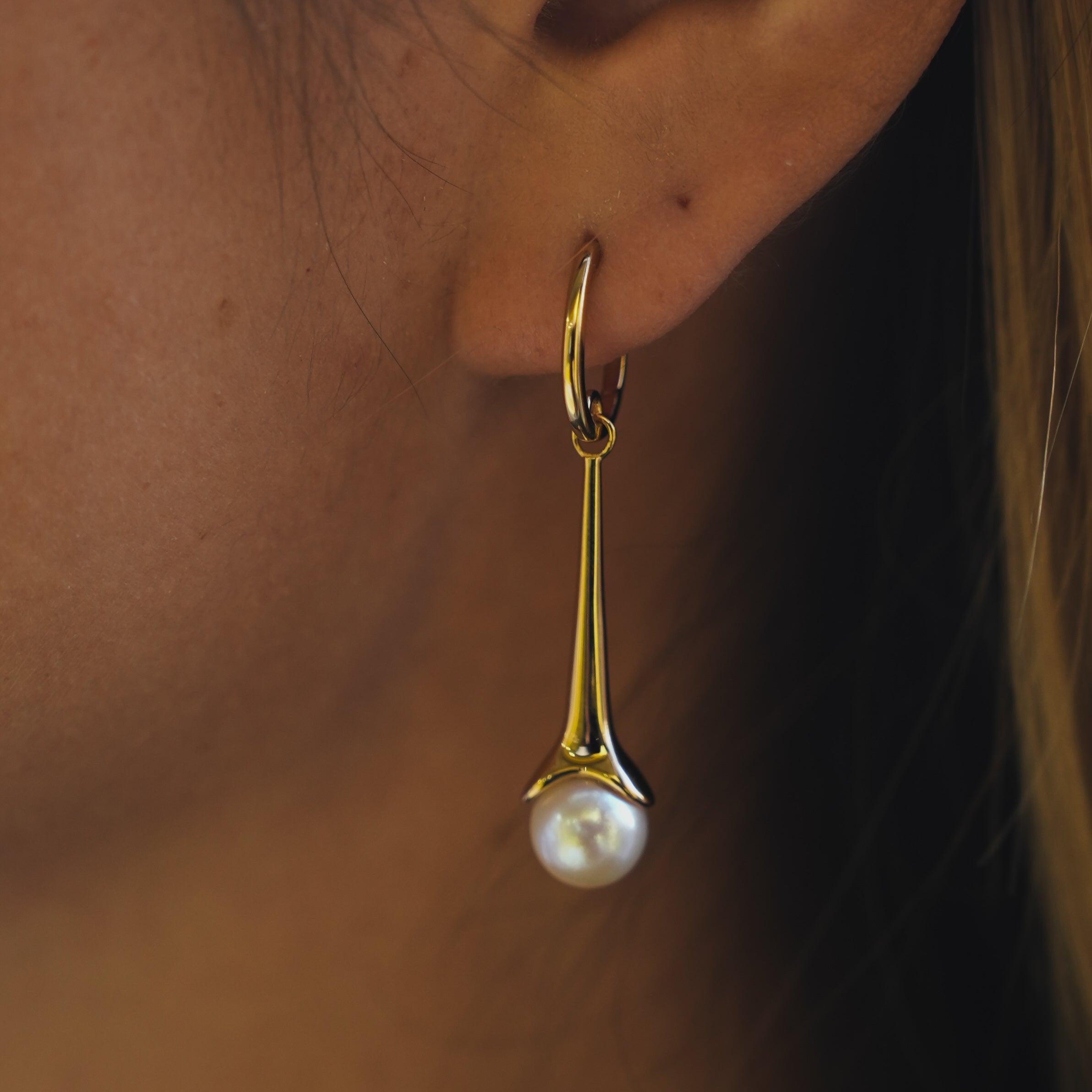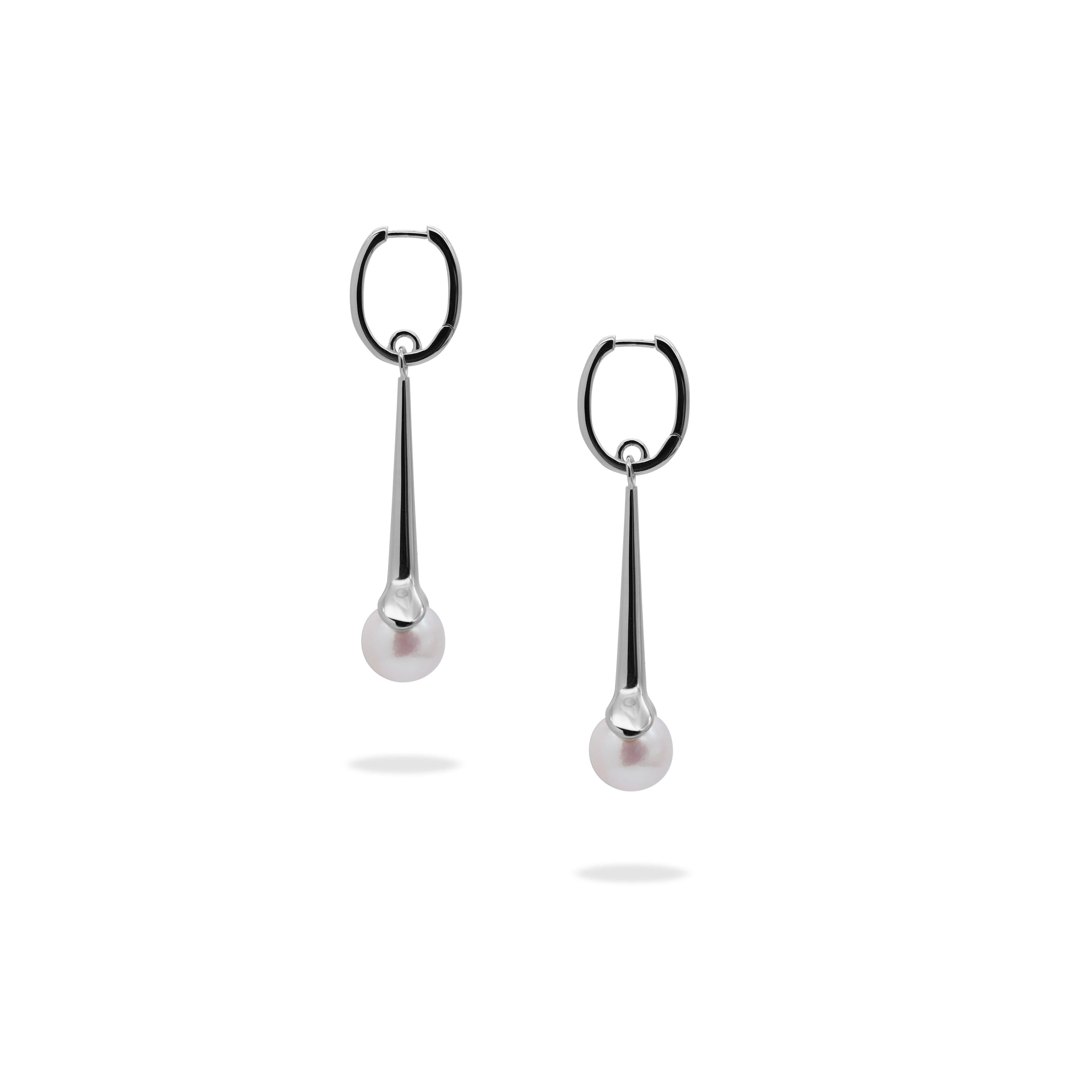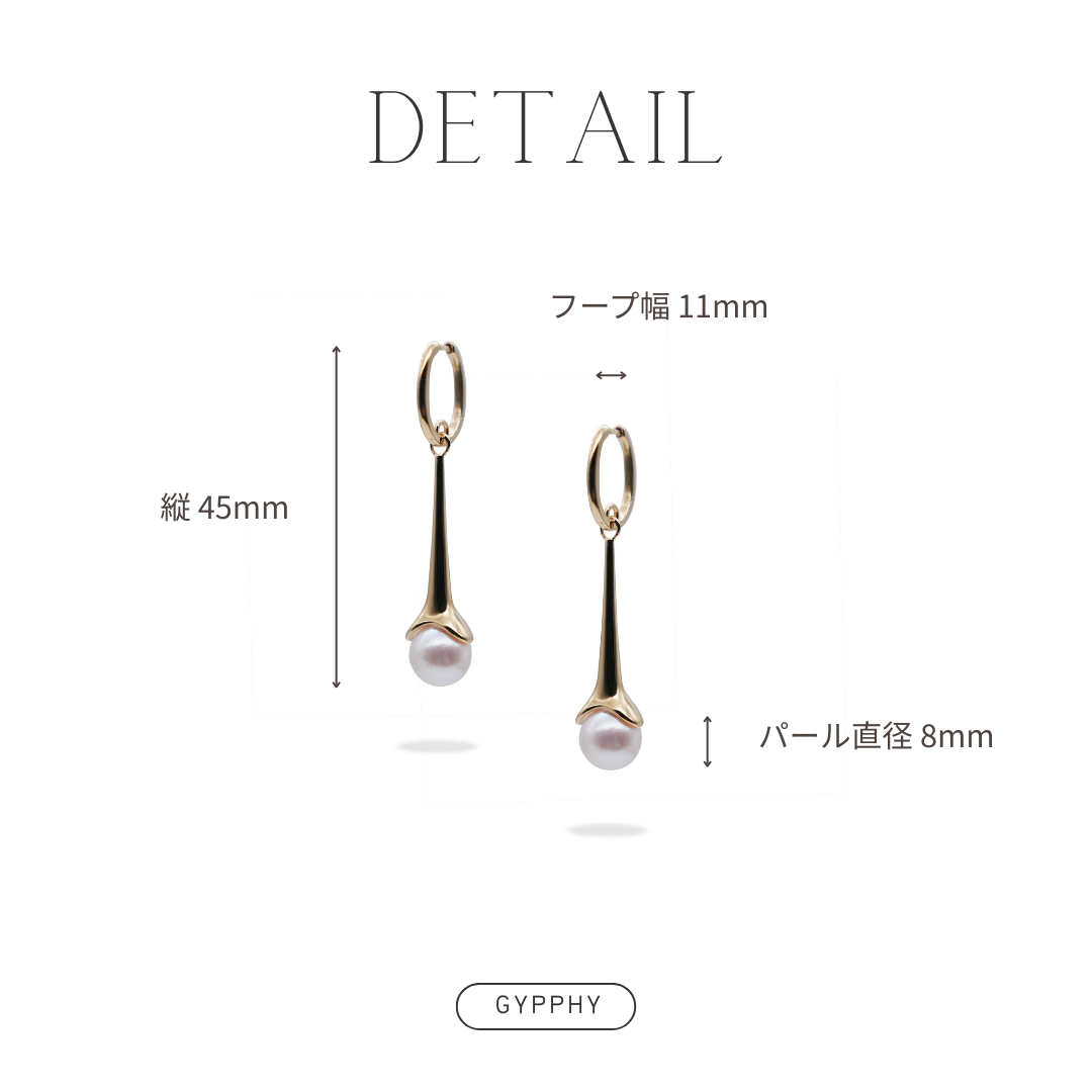 卵を丸呑みする蛇の姿にインスピレーションを得たピアス。蛇のしなやかなフォルムが持つ野生のエネルギーと、アコヤパールの持つ静かな美しさを融合させた、シンプルでありながら存在感のあるピアスです。ドロップタイプは、流れるような美しいラインが特徴で、上品な印象を与えます。縦に垂れるデザインが顔周りをすっきりと見せてくれるのも魅力です。