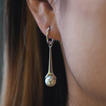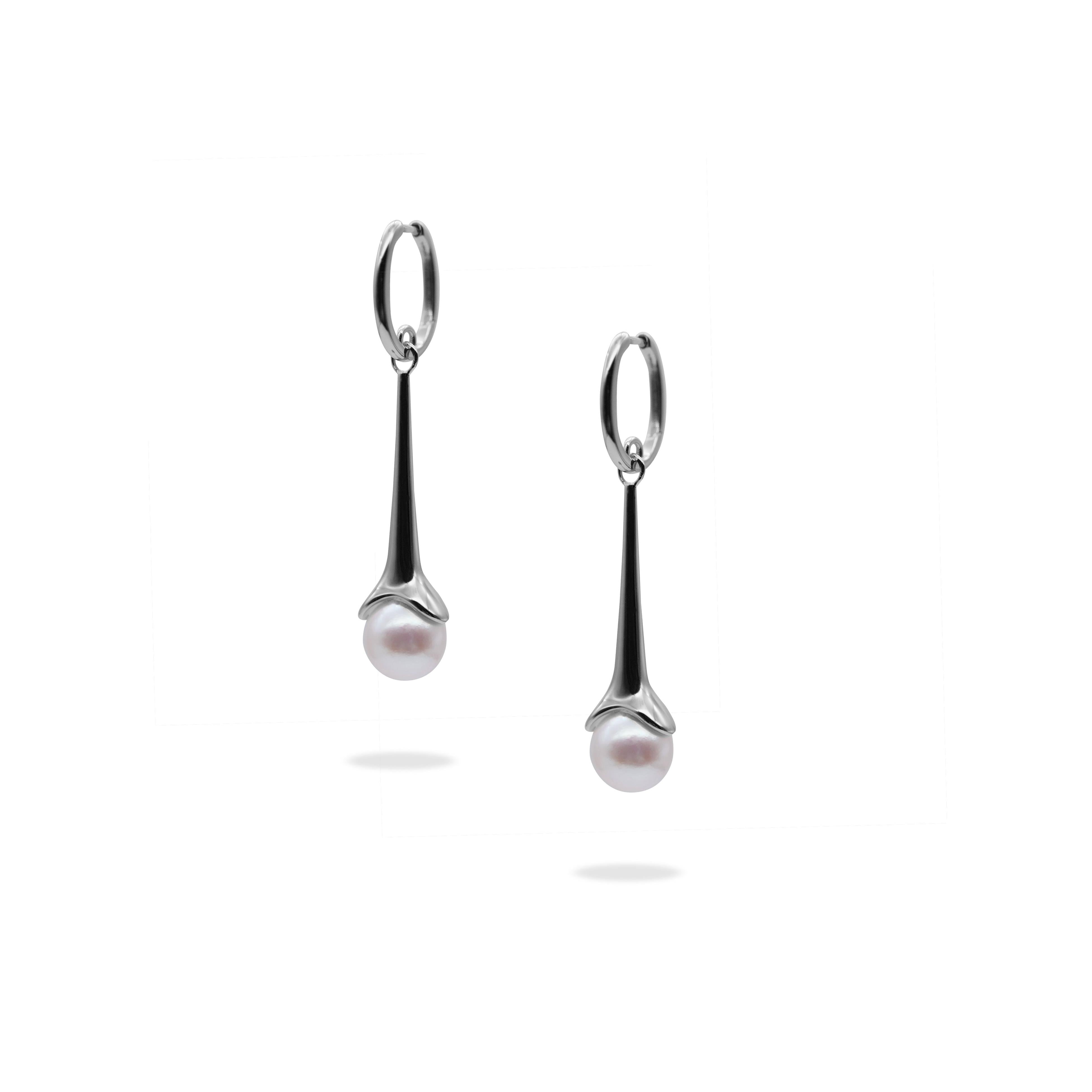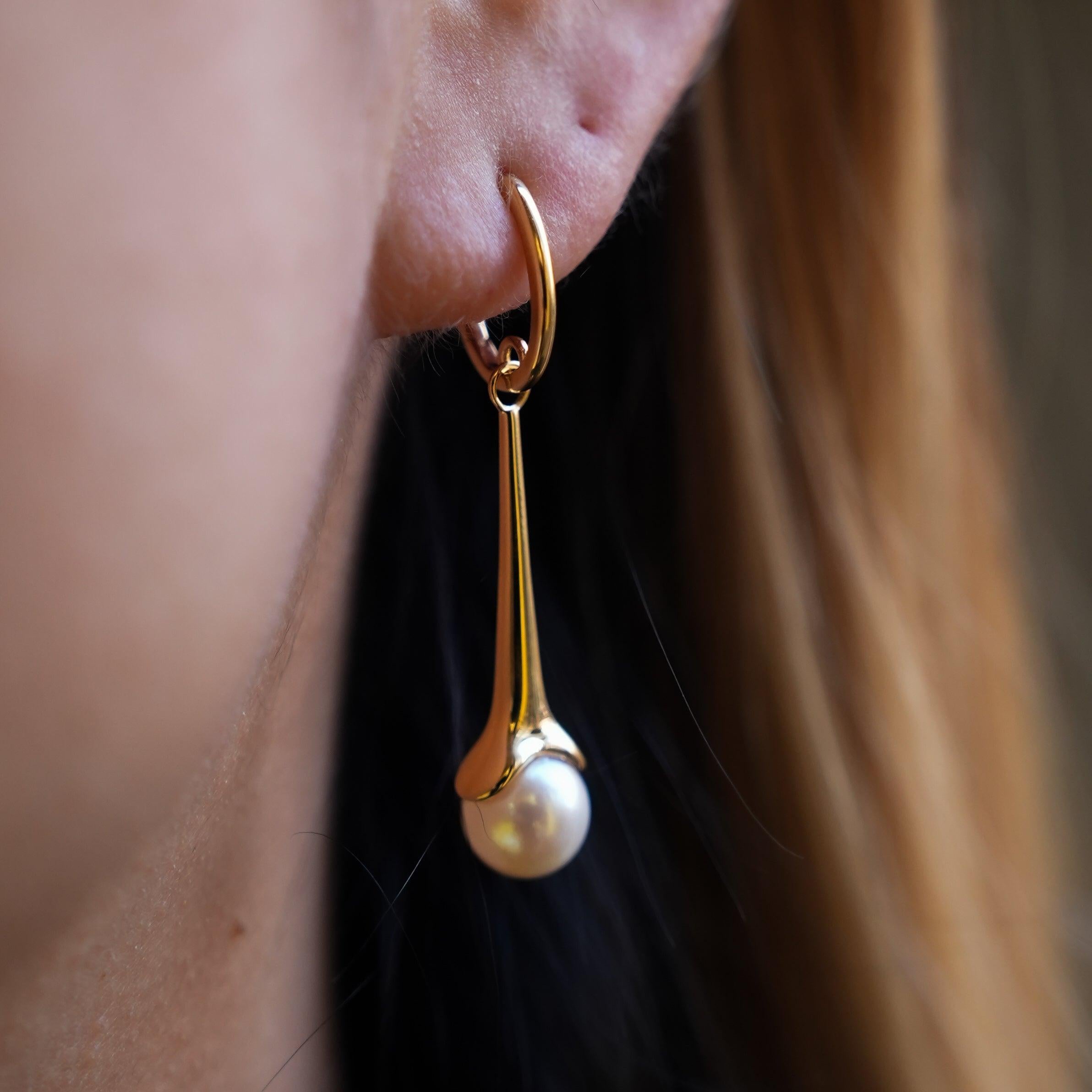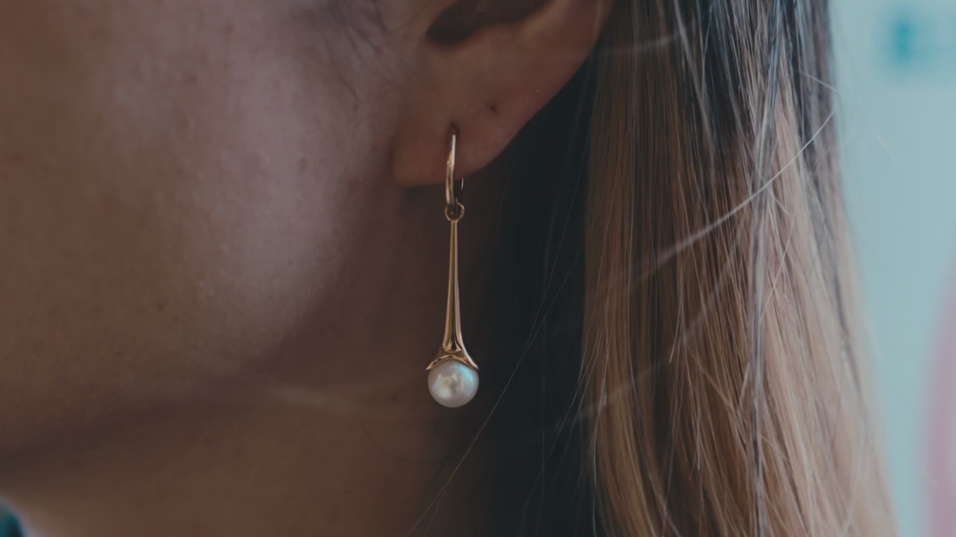 卵を丸呑みする蛇の姿にインスピレーションを得たピアス。蛇のしなやかなフォルムが持つ野生のエネルギーと、アコヤパールの持つ静かな美しさを融合させた、シンプルでありながら存在感のあるピアスです。ドロップタイプは、流れるような美しいラインが特徴で、上品な印象を与えます。縦に垂れるデザインが顔周りをすっきりと見せてくれるのも魅力です。