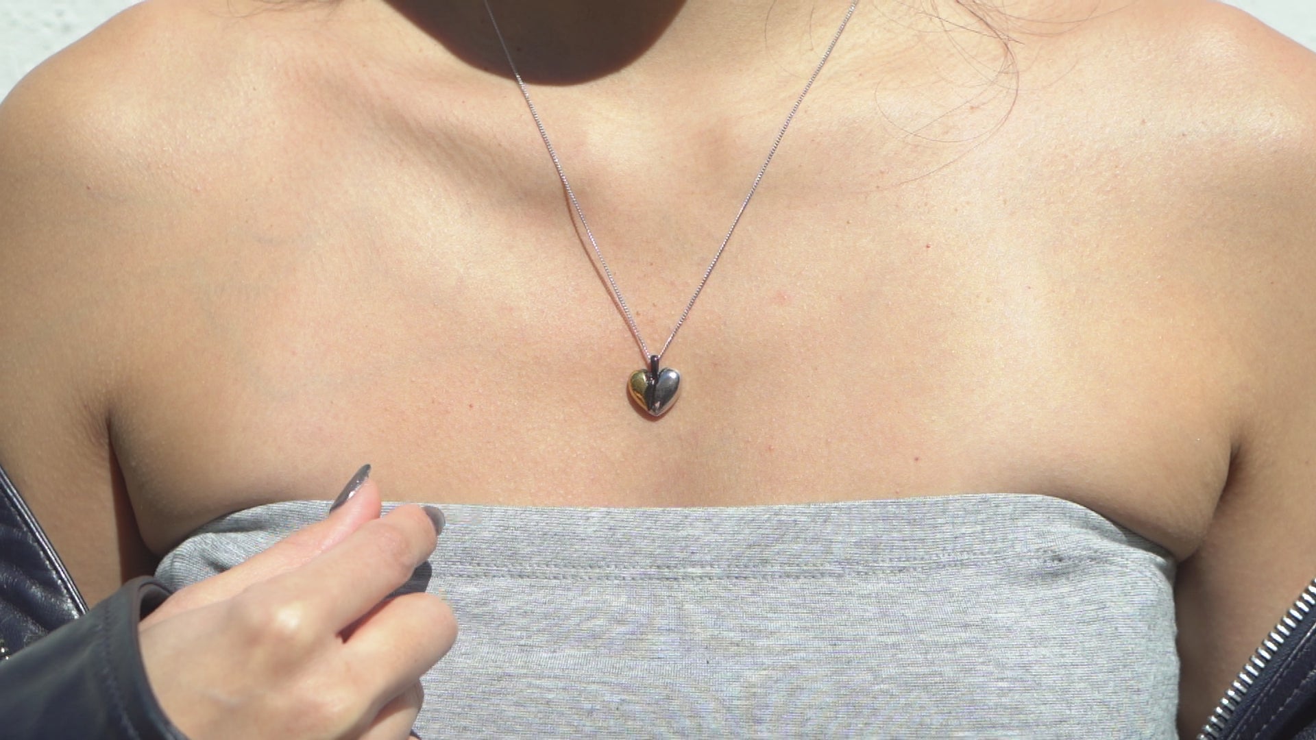 fragile heart necklace with green heart moissanite