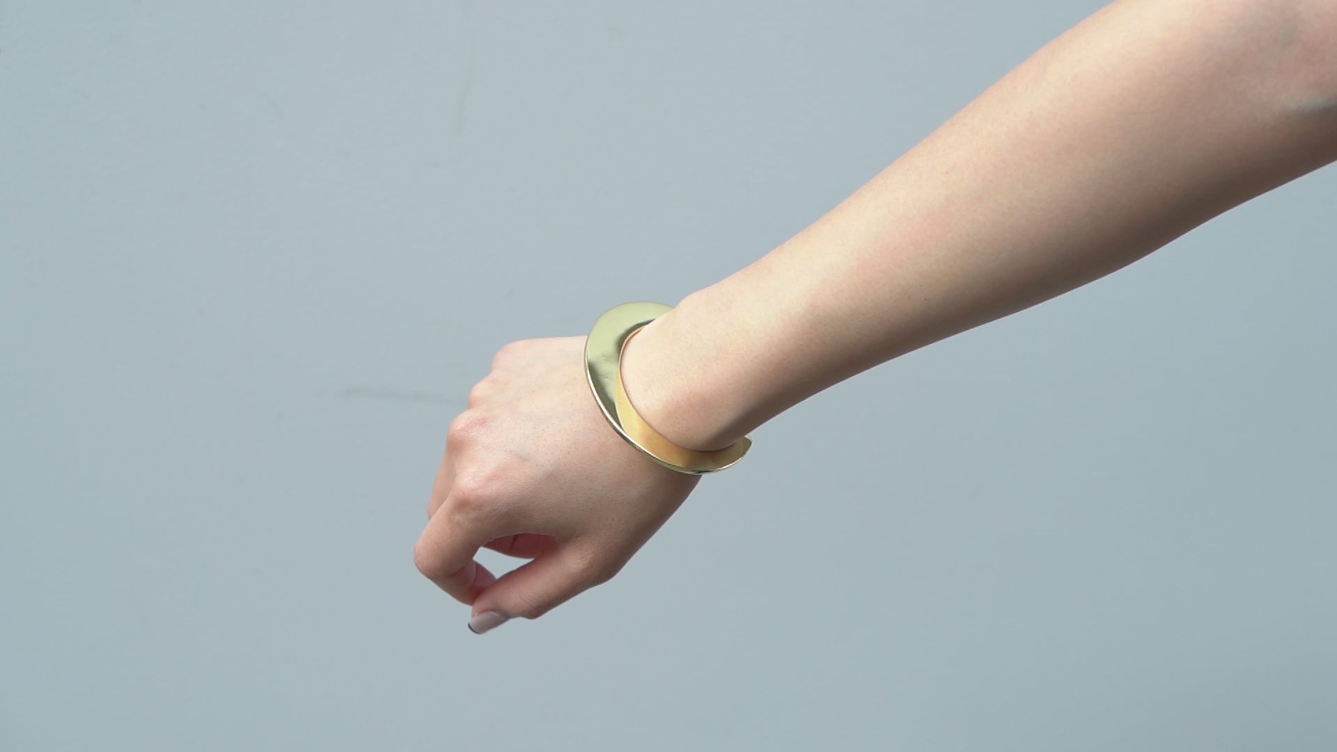 A sharp and voluminous bangle made of 925 sterling silver. The large width at the top gives it a luxurious feel, and the simple design makes the shape of your arms look beautiful. You can enjoy a wide range of styling from casual to mode.