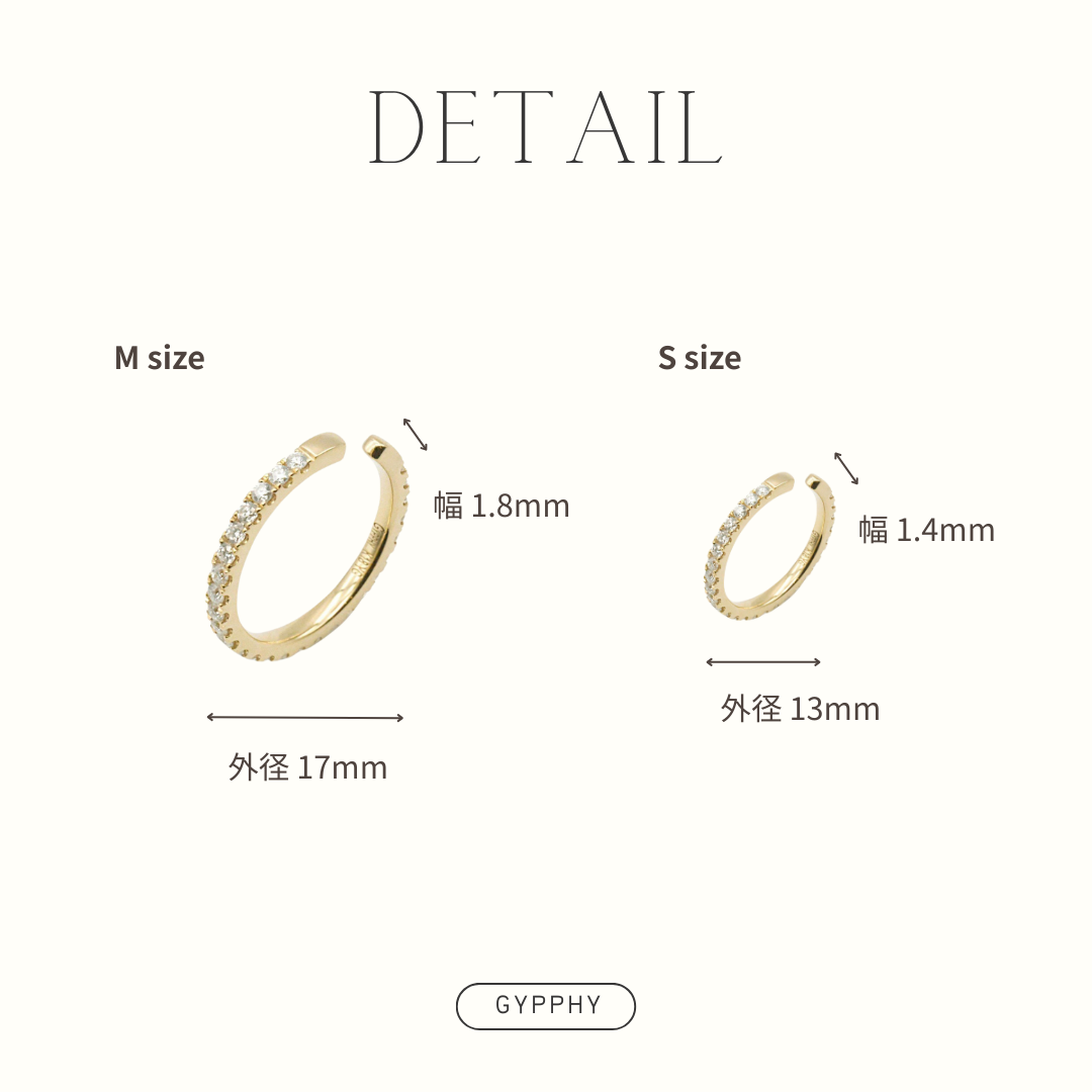 さりげなく耳元を飾りたいと、初のイヤーカフにフルエタニティを選びました。思っていたよりも細かったのですが、上品な煌めきに満足しています。