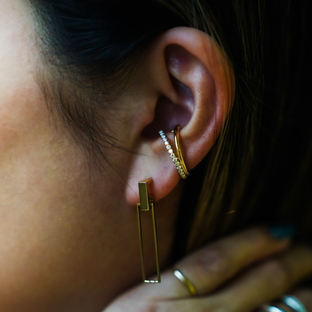 モアサナイトの綺麗な輝きをフルエタニティで耳元につけると気分が上がる!誰とも被らないイヤーカフでワクワクする日常をおくれるかも!またリングとしても約3号のサイズであるためピンキーリングとしても楽しむことができます。