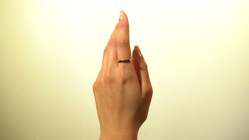 足枷(あしかせ)からインスピレーションを受けたデザイン。誰からも縛れらることなく、自由に、 力強く、そして自分らしく生きることを象徴としたリング。ありのままの自身を楽しめるリングです。 ボルト部分のデザインが見えるよう人差し指につけると可愛く見えます。また少し幅が広がっているように見えるため指がすっきりと見えます。