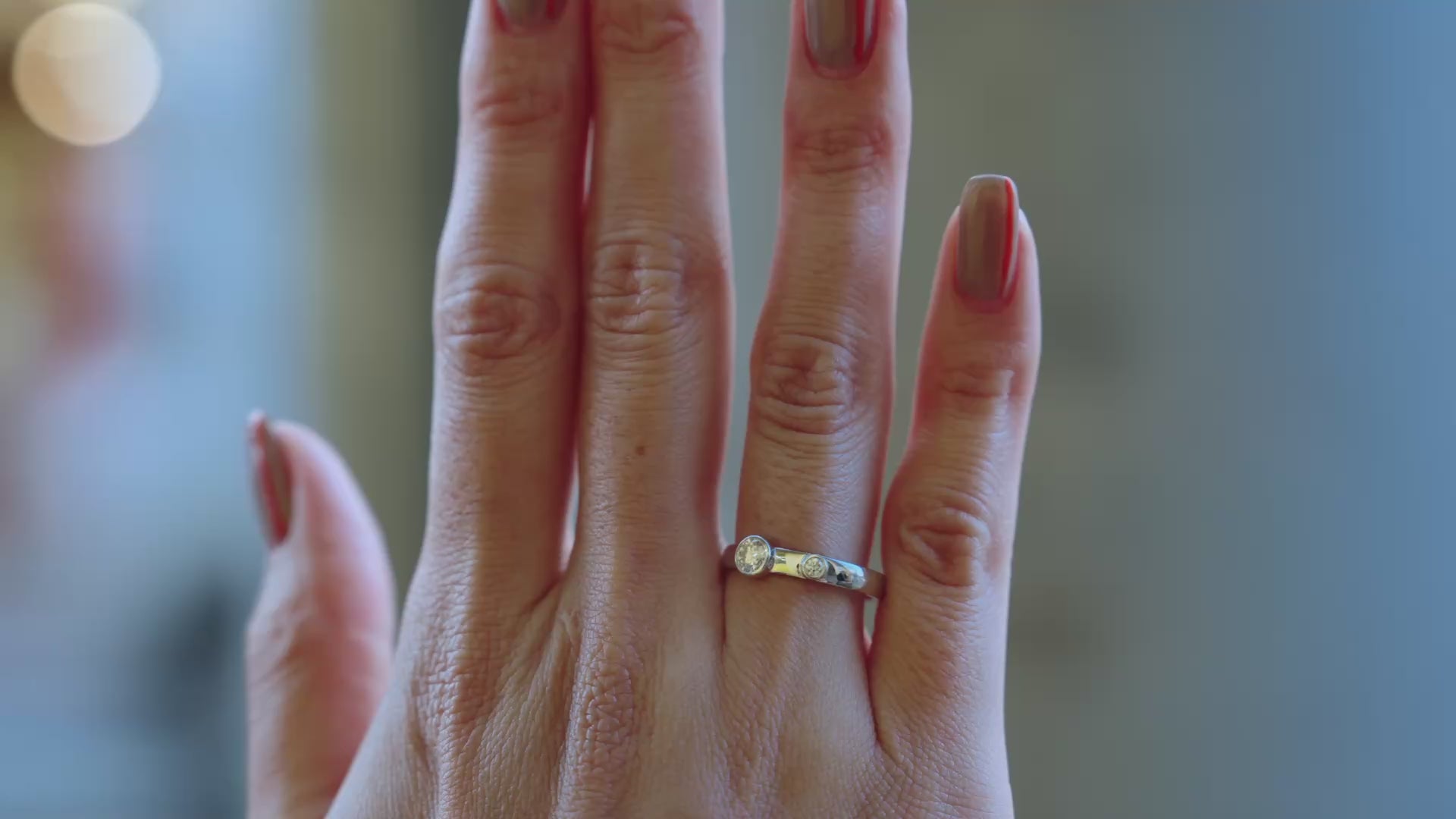 大小サイズの異なる2つのモアサナイト が輝くリング。華奢すぎないデザインで、手元にボリューム感を与えてくれます。 ご自身の肌に馴染むカラーを選ぶことで指をすらっとキレイに見せてくれます。