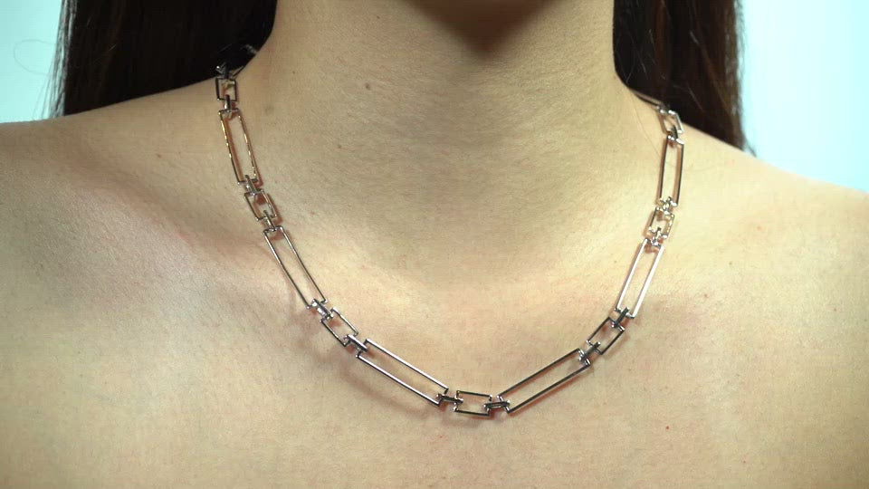 大小の角環を連ねてチェーン型のネックレス。ミニマルながら曲線のある動きが存在感のある仕上がりになっております。