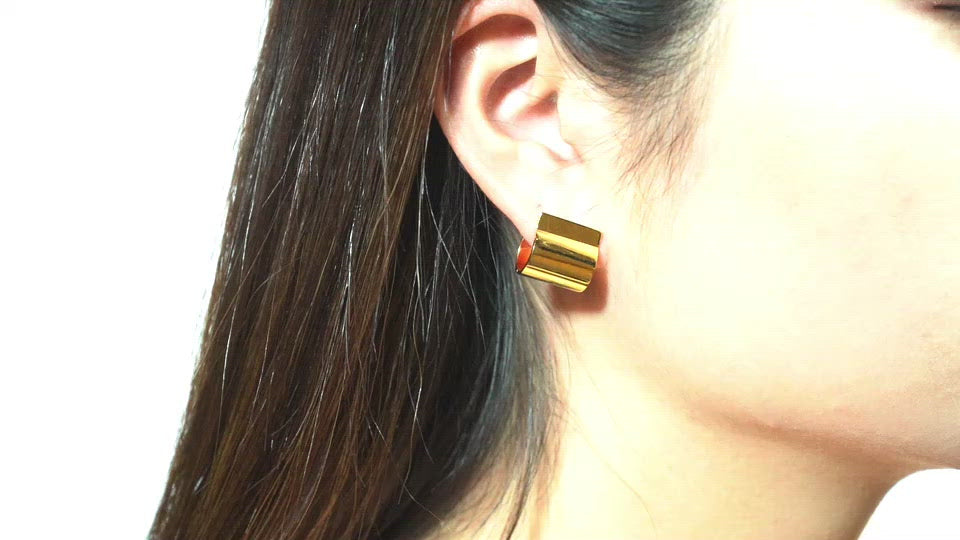 存在感があるがシンプルでモダンなデザイン。程よいボリューム感が耳元をおしゃれに、そして個性を出すピアスです。放物線を描いたラインに他に見ないフォルムと高級感があり上品な大人な女性を演出してくれます。