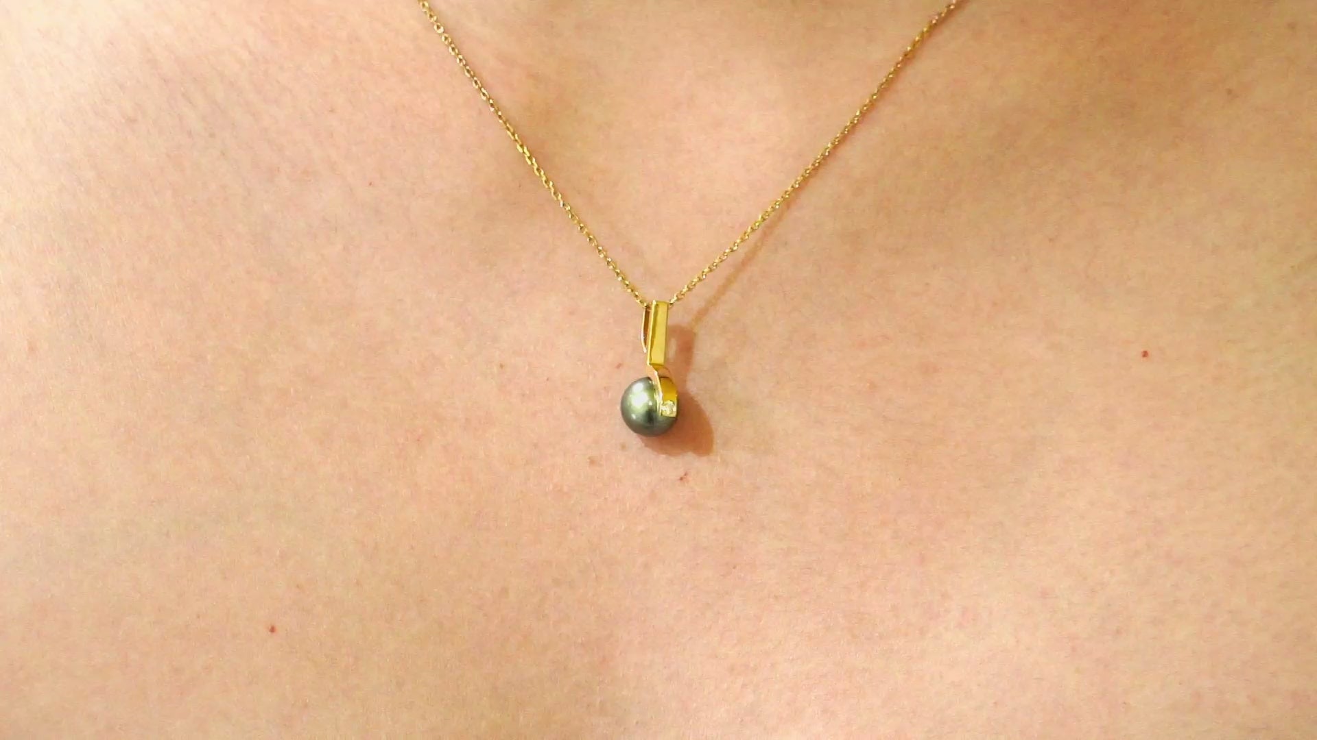 아름다운 블랙 컬러가 매력적인 고급 흑진주를 금으로 감싸고, 모아사나이트를 포인트로 더해 고급스러운 진주에 모던함과 패셔너블한 무드를 더한 젠더리스 펜던트입니다.