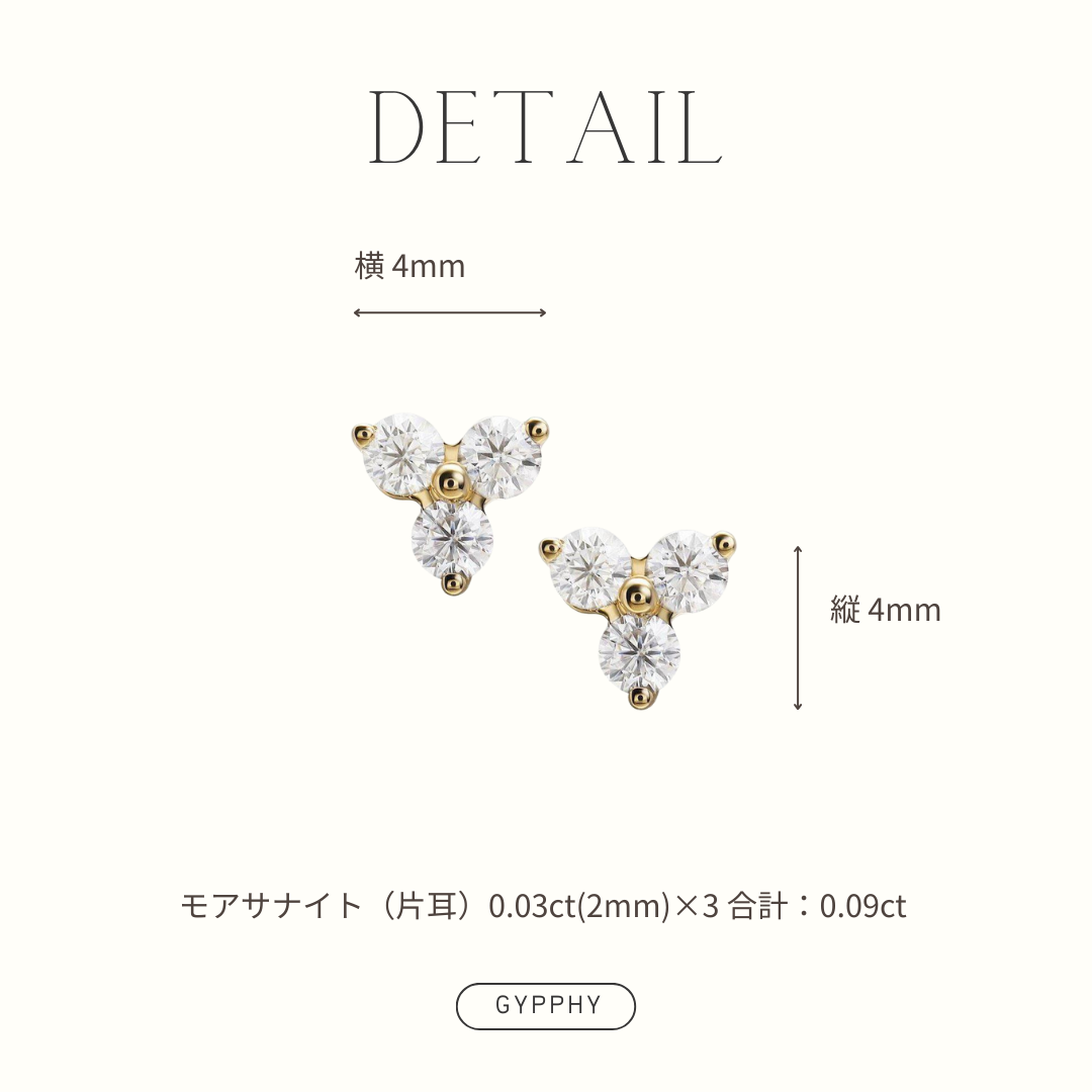 - モアサナイト(片耳)0.03ct(2mm)×3 合計:0.09ct