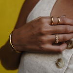 長く使えるゴールドのバングルが欲しくてゴールドヴェルメイユのものを探していたら、太さやサイズ感がドンピシャタイプなものに出会えました。腕でキラキラ輝いていて、付けていると幸せな気持ちになります〜!