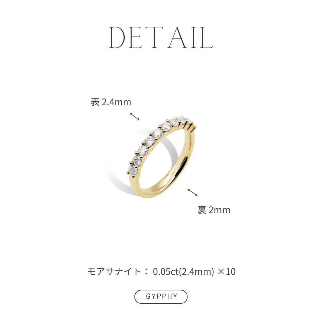 手持ちのダイアモンドリングと組み合わせて使えるエタニティを探していて、ずっと気になっていたGYPPHYさんのモアサナイト。