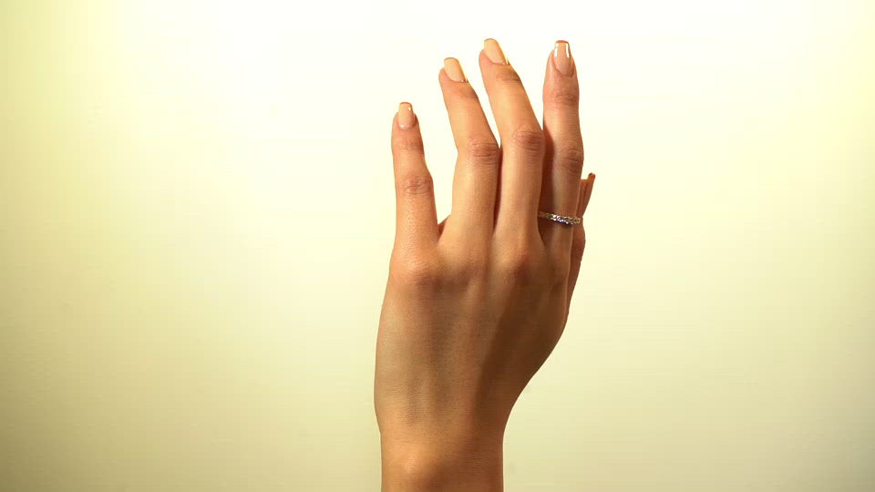地金が選べたり豊富なサイズ、この石のサイズ感も買いの決め手でした。太めの指でも似合うエタニティシリーズは希少です。付ける指によって雰囲気が変わるのも魅力です。